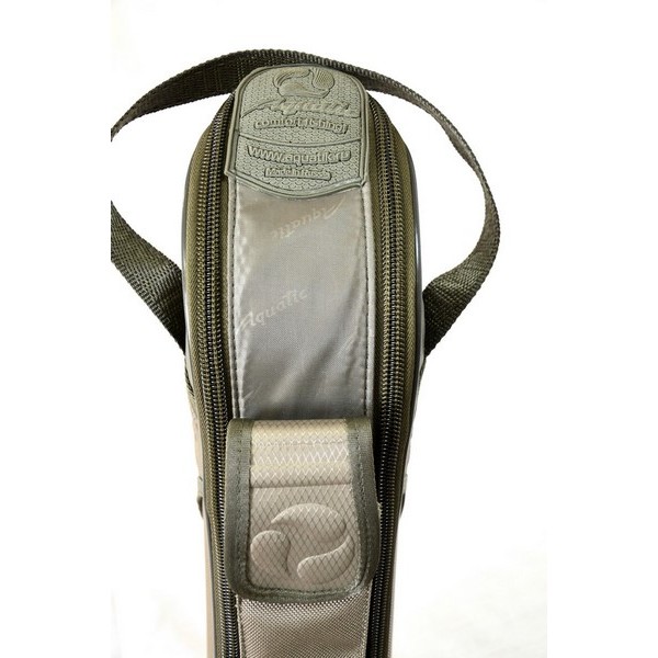 Полностью жесткий чехол Aquatic Ч-09 выполнен из качественных нейлоновых материалов. В основе его лежит пластиковый лист 2 мм. Снаружи расположен длинный карман для подсака или стоек и объемный карман на молнии для аксессуаров. В чехол помещается до 5 удилищ с катушками. Внутренняя часть выполнена из мягкого ворсистого материала, на который крепятся специальные (подушки) для катушек. Уникальная конструкция позволяет поставлять данный чехол в развернутом виде, что вчетверо уменьшает его объем при транспортировке. Сборка производится на месте в течение 1 мин.
